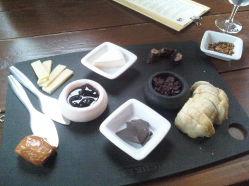 Lynette managed to score a sweet deal on the cider tasting from Groupon.com, which included nine samples of cider, a platter of local cheese, meats, preserves, and bread to compliment the cider samples, hot buttered Rumrunner cider (yum!), and a bottle of your choice of cider. It was awesome, and would still be totally worth going even without the deal – the full flight of nine cider samples is only $16 regularly, and it was enough for all three of us to get a good taste of all nine. And it was delicious, of course!