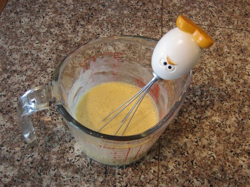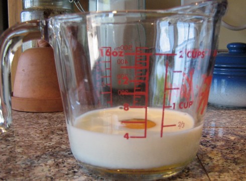 In a glass liquid measuring cup, whisk together 1 egg and enough milk to come up to 1/2 cup.