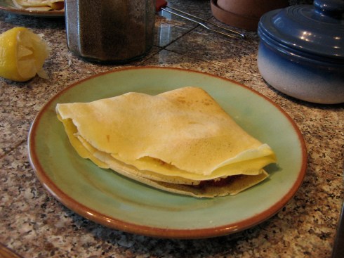 I was in Vancouver overnight last week to see “Wicked” with some friends, and the next morning we went out for crepes for breakfast. They reminded me of the crepes my Mum used to make, only she called them “leathery pancakes”, because… well, they are kind of thin and leathery.