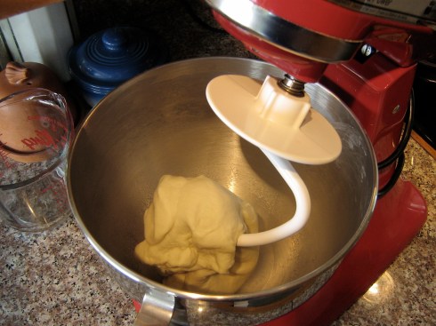 Remove it from the mixer and knead by hand on a floured surface for about 2 minutes, whacking the dough down hard on the counter a few times during kneading.