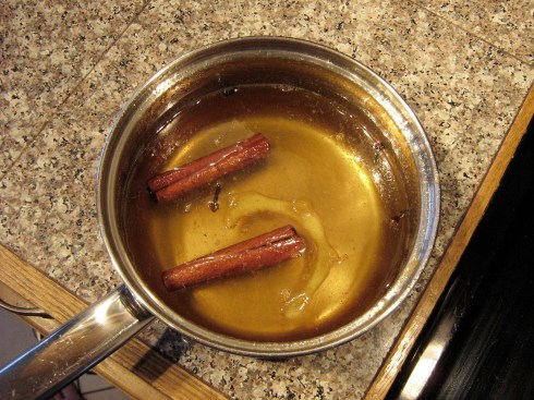 Bring to a boil over medium high heat, stirring to dissolve the sugar. Boil for 10 minutes, then remove from the heat and allow to cool. Remove the spices and lemon rind. (Best to make the syrup while the baklava is baking.)