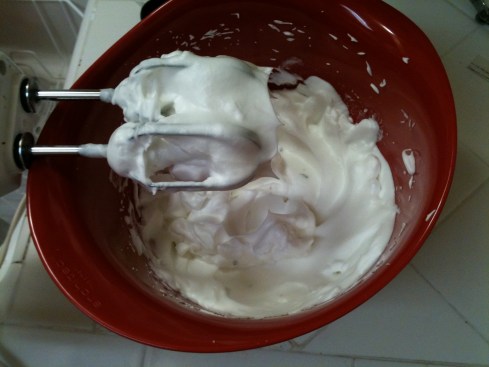 1 baked 8″ chiffon cake, cut in 2 layers (trim off the top if it is uneven and cracked-looking)