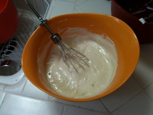 Fold in the remaining egg whites until just combined, being careful not to deflate the batter too much.