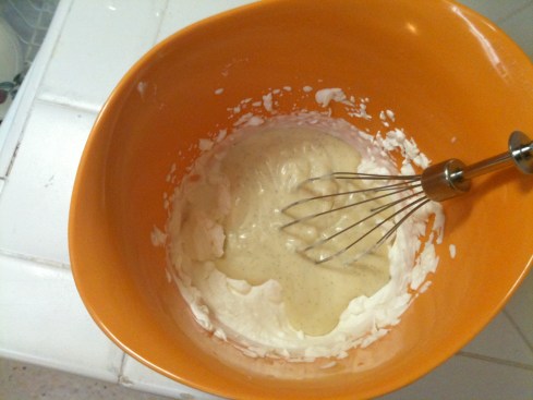 (I was running low on pastry cream so I used a few tablespoons of heavy cream, heated in the microwave, to mix with the gelatin and it worked just fine!)
