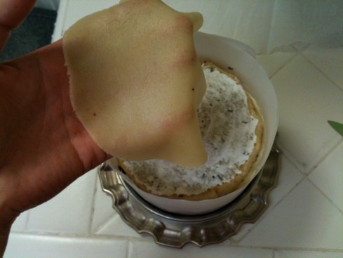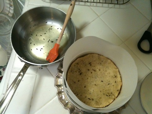 Jana gave us lots of freedom with the flavours in our fraisiers – the only caveats were that it had to include cake, cream, and exposed fruit around the sides. I knew I wanted the berries to be the star of the dessert, so I shrugged off my initial reaction of “OMG chocolate everything!!!” and went instead with floral flavours. I used lavender sugar to make the chiffon cake and simple syrup, and I used vanilla bean in the pastry cream for an extra vanilla hit. By happy accident, my aunt didn’t have any regular sugar so I ended up also using honey in the pastry cream, which turned out to be an awesome flavour along with the vanilla and lavender.To make the cake wheat-free I used a gluten-free baking mix from Bob’s Red Mill. The pastry cream called for corn starch, and I wanted to replace it with tapioca starch, but I couldn’t find any in the grocery store. Instead, I used regular tapioca granules – the kind used for making tapioca pudding. This only sort of worked: it thickened up nicely, but it had the little tapioca pearls in it (the texture of which totally puts me off 😦 ) so I sieved the pastry cream to remove them, and ended up with not quite enough pastry cream. It worked out in the end, but lesson learned: tapioca for pudding is NOT the same as tapioca starch! (Also FYI, the little tapioca pearls, when dry, are hard as rock and IMPOSSIBLE to crush!)
