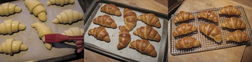 Brush the egg wash over the croissants in a thick, even coating. Preheat the oven to about 490˚F then turn down to 475˚F when you put in the croissants. Bake the croissants for 12-15 minutes at 475˚F, until deeply golden brown. Cool on a rack and eat them while they’re fresh :).
