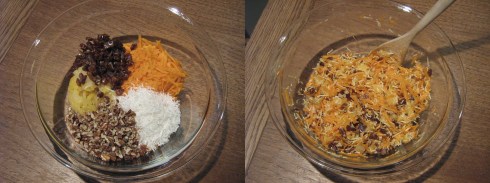 Gently fold the flour mixture into the egg mixture, then fold in the carrot mixture.