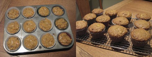 We were supposed to visit Nate’s parents for his mum’s birthday a few weeks ago, and Nate asked me to make a birthday cake, which I happily agreed to. Sadly the visit got canceled, but I already had my heart set on carrot cake, so I made it anyway as cupcakes rather than a layer cake. This is the carrot cake recipe from the rebar cookbook, and it is the best carrot cake I have ever had. I like my carrot cake with lots of stuff in it, and this one delivers: carrots, coconut, pineapple, pecans, and dates, along with a good hit of spices. Moist, crumbly and delicious – this is definitely a cake that requires a fork and a napkin.