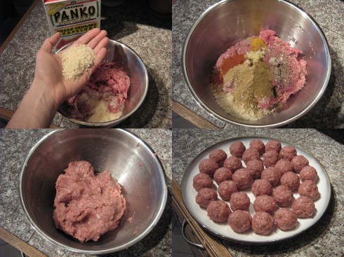 Mix it all together gently with your hands. Form the mixture into 1-inch balls and place them on a plate. You should get about 30 meatballs. Freeze half of them for later.