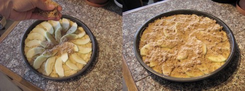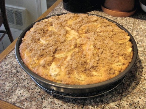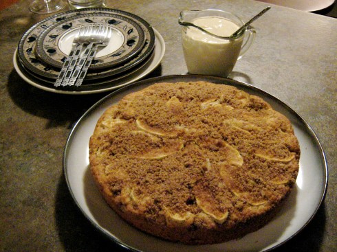 Anyway, we all know that dessert is the most important part of any meal, so let’s focus on that: I made an apple cake using my favorite one-bowl butter cake recipe, topped it with brown sugar struesel, and served it with creme anglaise, which is pretty much the best sauce ever – it tastes just like melted vanilla ice cream only better. It was all super delicious, and the cake actually tasted even better the next day – I guess the apple and cinnamon flavours had more time to develop or something. It was also a nice cozy thing to eat in the fall – very comforting and homey.