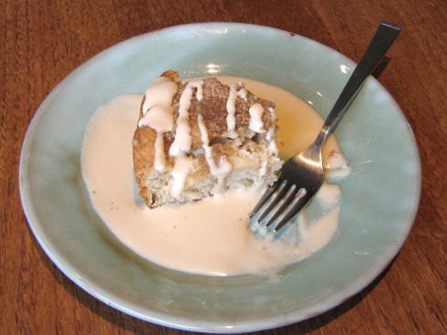 Slice into wedges and serve warm or at room temperature in a puddle of creme anglaise (recipe follows).