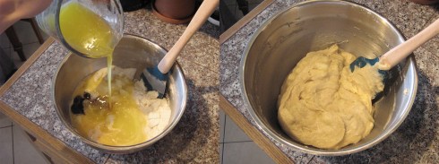Stir everything together until there are no dry patches. The batter will be quite thick – almost more like cookie dough than cake batter.