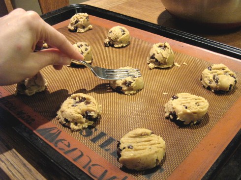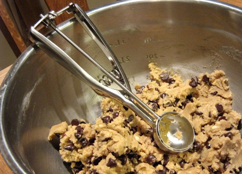 And I got to use a new kitchen gadget! I finally bought one of these spring-loaded dough scooper things, which was awesome for scooping out uniformly-sized cookies…
