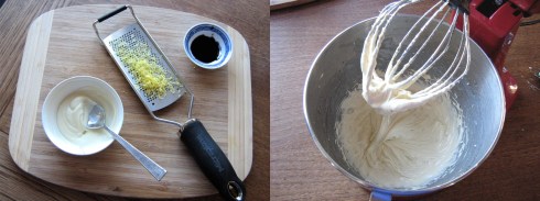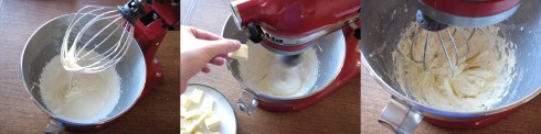 When the egg yolk mixture is completely cool, turn the mixer speed to high and beat in the softened butter, one cube at a time. Keep beating until all the butter is added and the mixture becomes a fluffy, creamy, frosting.