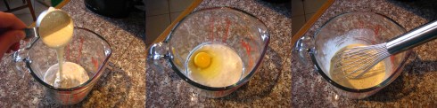 In a large measuring cup (or a medium bowl with a pouring spout), mix together: