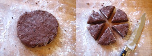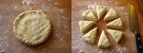 Press it down with your fingers into a 2 cm thick round, and cut it into 8 wedges with a sharp knife.