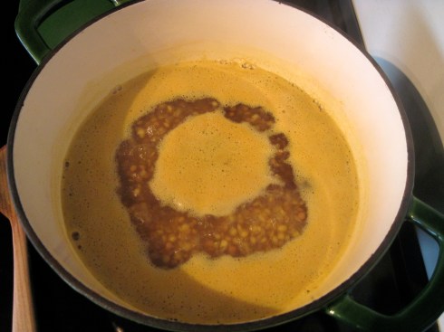 When the foaming has subsided (5 – 8 minutes later), cover the pot fully and let simmer for about 30 minutes, until the lentils are tender.