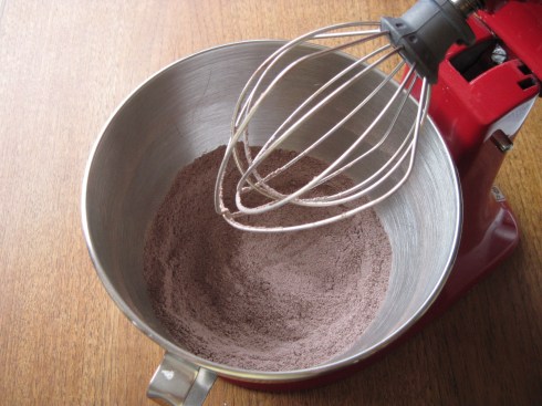 With the whisk attachment, mix the dry ingredients on low speed to combine so there are no lumps.