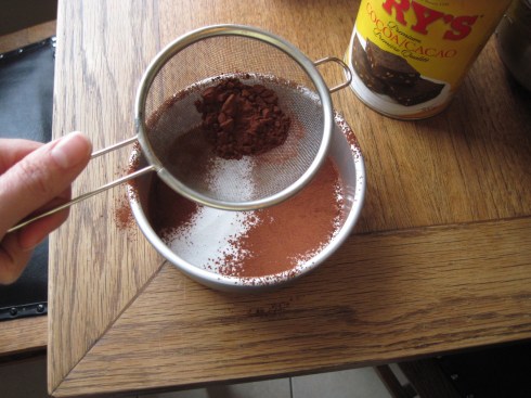 Preheat the oven to 325˚F. Prepare three 8-inch round cake pans by lining the bottoms with parchment paper, greasing them, and dusting them with cocoa powder. Set aside.