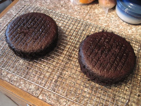 Let cool in the pan for 5 minutes, then run a knife around the edge and invert onto a cooling rack. Peel off the parchment paper and let the cake layers cool completely. Chill them in the fridge to make them easier to handle when assembling the cake.