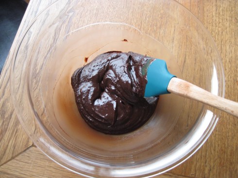 Mix on medium low for a few minutes, scraping down the sides as necessary. The batter should be thick but pourable.