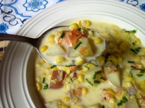 Sweet corn has got to be one of the best things about late summer. I could eat it every day straight off the cob, but sometimes it’s fun to do other things with it – like putting it in a creamy chowder with smoked salmon. Recipe on the SeaChange blog!