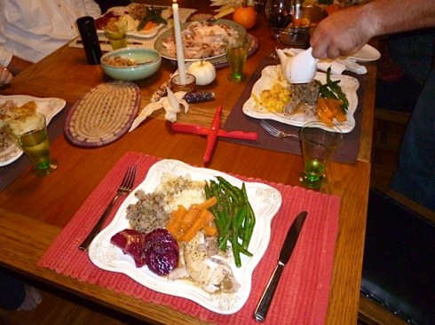 There was a huge flurry of activity in the kitchen in the moments before the meal as my Mum mashed potatoes, Nate and I made gravy, his Dad sautéed green beans, my Dad carved turkey, and things got put in serving dishes. It was the best kind of organized chaos and one of the things I love about a family dinner.