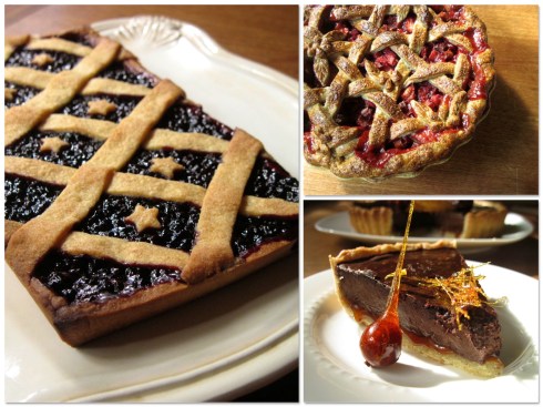 I have pretty much got the pastry-making process down (a cool kitchen, lots of butter, a good pastry cutter, folding and frissage to make flaky layers, and a chill in the fridge), so I had fun trying these new recipes and getting creative with decorations. Since I have three recipes to share, I’m going to dole them out over the next three days. First up is the Blackberry-Maple Crostata di Marmellata.