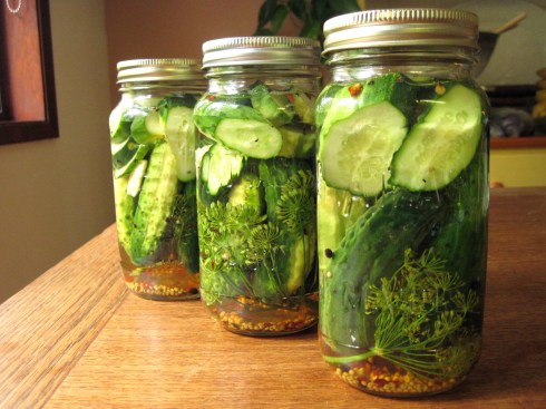 This month’s topic for the Canadian Food Experience Project is “Preserving: Our Canadian Food Tradition”. One preserving memory from my childhood is the smell of sun-warmed dill growing in my Mum’s garden every summer, destined for dill pickles. The dill plants would spring up randomly all over the garden, waving their frilly fronds in the breeze, until their yellow flowers started to get heavy with seeds and they would be stuffed into glass jars along with dozens and dozens of tiny lumpy pickling cucumbers. These days I love making jam and and canning fruit, but I’d not yet ventured into the pickling arena.