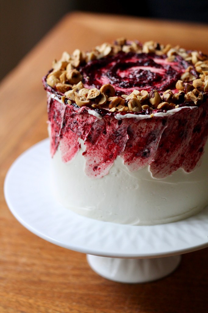 I usually gravitate towards chocolate on chocolate on chocolate when dreaming up a dessert, but this cake reminded me once again how good non-chocolate things can be: rich hazelnuts, bright tangy blackberries, and creamy vanilla buttercream in a perfect celebration of the last days of summer.